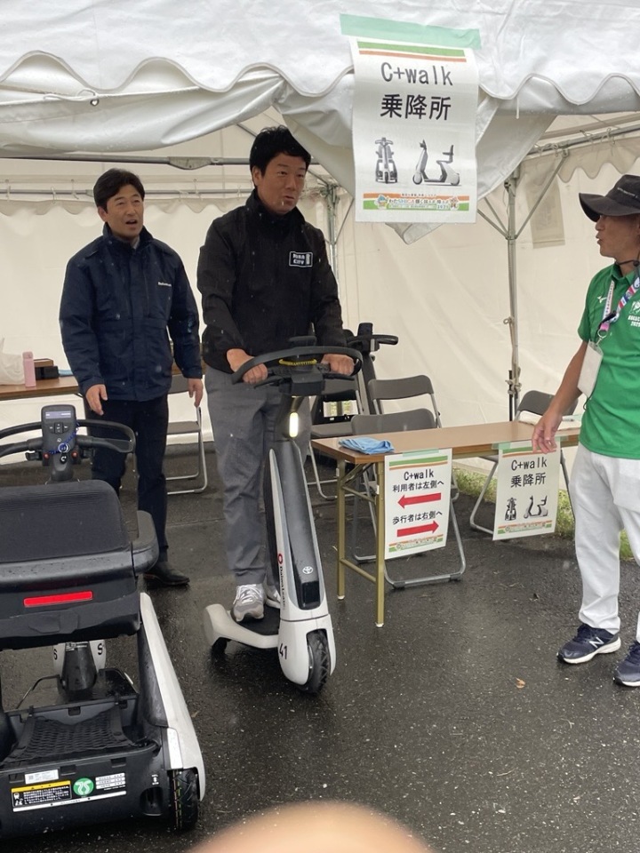 小雨ながらも大会会場でC+walkの貸し出しを実施をしたところ、2日間で延べ150名の方が乗車いただきました!